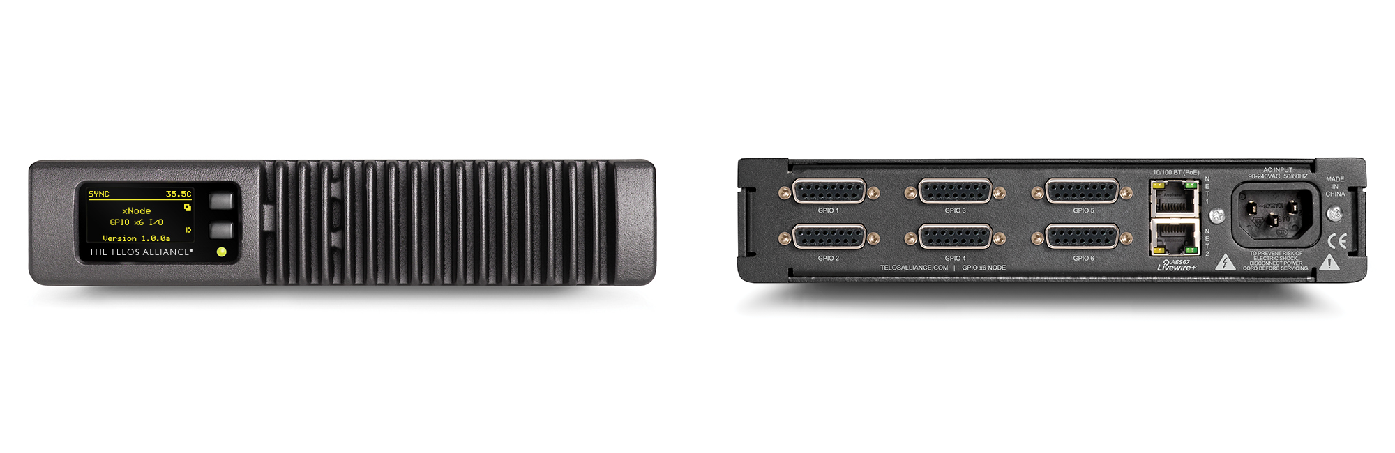 The xNode lightweight, half-rack, high-performance IP-Audio interface from Telos Alliance is loaded with advanced features and capabilities. One-button configuration takes a new xNode from out-of-the-box to on-the-air in under one minute. They’re fanless, which means they’re noiseless too. Versatile mounting options let you deploy two xNodes in just 1RU of rack space, or on ceilings, walls, and under counters with an available wall-mount kit. xNodes have studio-grade audio performance specs. Redundant power options (using AC mains and Power-over-Ethernet) and dual-redundant network interfaces are included, both with automatic switching.